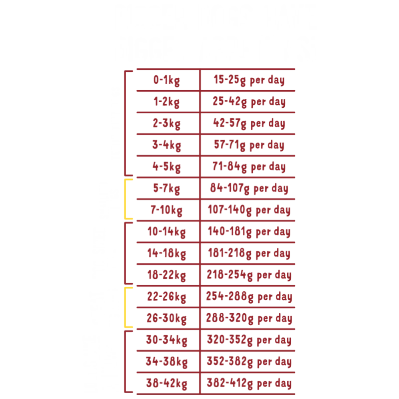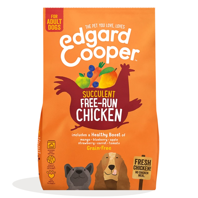 Composizione: pollo fresco 41%, patate, piselli, proteina di piselli, grasso di pollo, semi di lino, sughetto di pollo, minerali, olio di pesce, mannanoligosaccaridi, fruttoligosaccaridi, mango 0,04%, mirtilli 0,04%, mele 0,04%, fragole 0,04%, carote 0,04%, pomodori 0,04%, fiori di calendula, ortica, foglie di rovo, finocchio, cumino dei prati, camomilla, melissa.