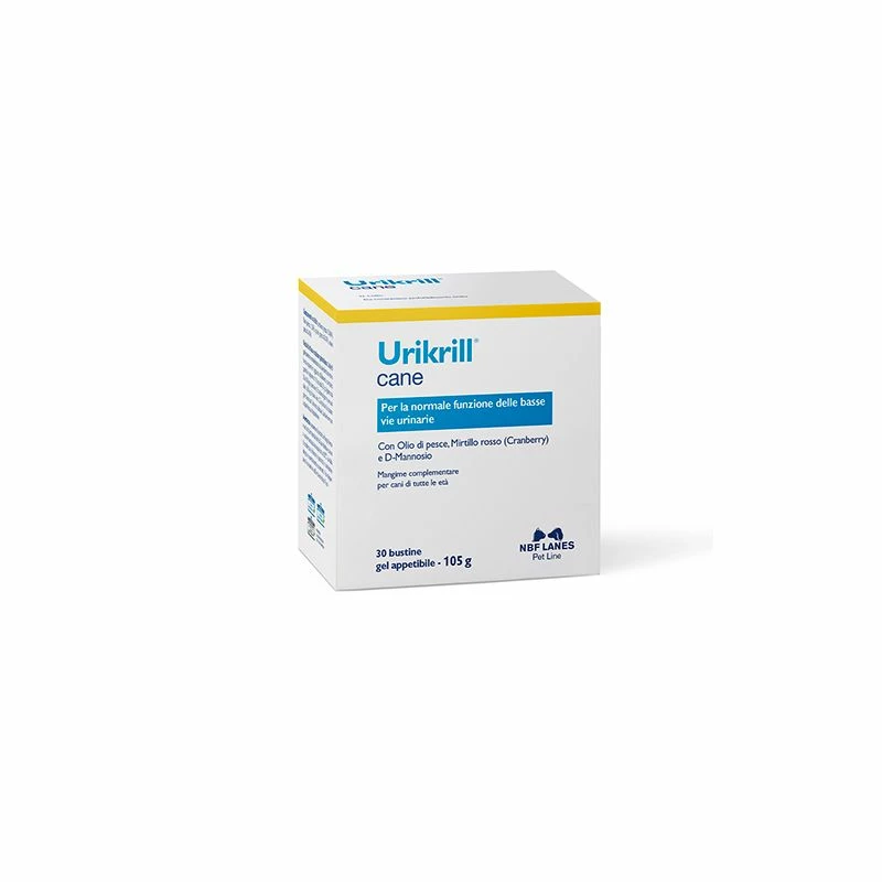 Oli e grassi vegetali (olio di semi di girasole raffinato), olio di pesce (35% EPA-25% DHA) 8,57%, prodotti ottenuti dalla trasformazione di erbe (cranberry – Vaccinium macrocarpon aiton – succo frutti in polvere) 8,57%, D-mannosio 8,57%, proteine animali idrolizzate (origine avicola), glucosamina (chitosamina) da fermentazione 2,85%, fruttoligosaccaridi (FOS) 2,28%, lieviti (lievito di birra), prodotti ottenuti dalla trasformazione di erbe (lespedeza – Lespedeza capitata Michx.- foglie polvere 1,4%, ortosifon – Orthosiphon stamineus Benth.- foglie polvere 1,4%), olio di krill 1%, Lactobacillus reuteri NBF DC PRO* DC PRO* 0,57%, oli e grassi vegetali (olio di palma idrogenato), prodotti ottenuti dalla trasformazione di erbe (griffonia – Griffonia simplicifolia – semi polvere 0,28%, mirra – Commiphora myrrha Nees.Engl.- oleoresina polvere 0,14%), oli e grassi vegetali (olio di colza), maltodestrina. Additivi: Additivi nutrizionali: 3a700 vitamina E (tutto-rac-alfa-tocoferil acetato) 7.142,8 mg/kg. Additivi organolettici: Prodotti naturali botanicamente definiti: 2b163-ex curcuma (Curcuma longa L.) estratto 4.285,7 mg/kg, boswellia (Boswellia serrata Roxb. Ex Colebr.) estratto 2.857,1 mg/kg, rosmarino (Rosmarinus officinalis L.) estratto 1.885,6 mg/kg. Sostanze aromatizzanti: 2b09211 gliceril tributirrato 3.000 mg/kg, miscela di sostanze aromatizzanti. Additivi tecnologici: E460 cellulosa microcristallina, E551b silice colloidale, 1c322i lecitine, E202 potassio sorbato, E330 acido citrico, 1b306(ii) tocoferoli estratti da oli vegetali.