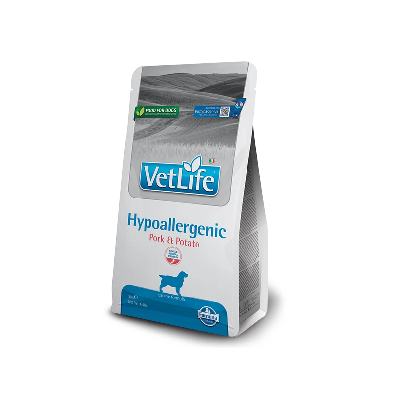Farmina Vet Life Hypoallergenic è un alimento dietetico completo, per cani, per la riduzione di intolleranze a ingredienti e sostanze nutritive; supporto della funzione dermica in caso di dermatosi ed eccessiva perdita di peli.